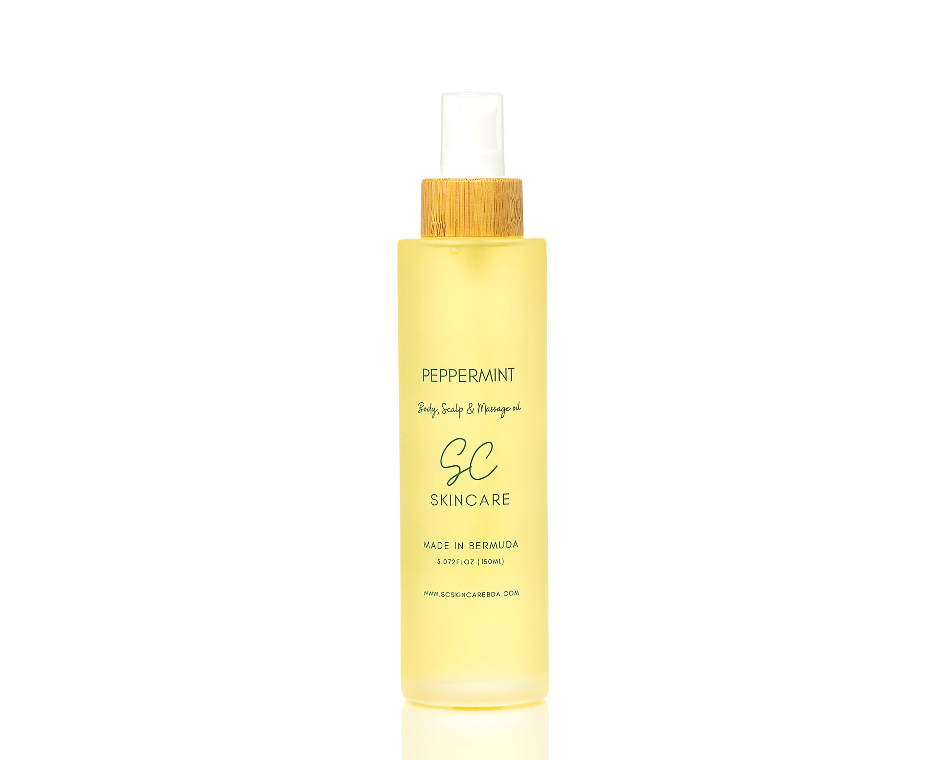 This Peppermint scented body oil has a bright sweet and fresh scent. We use lightweight carrier oils that revive and moisturize for soft, glowing skin daily. They also contain Vitamin E and Omega-6 fatty acids which is be beneficial in managing inflammatory skin conditions such as acne.